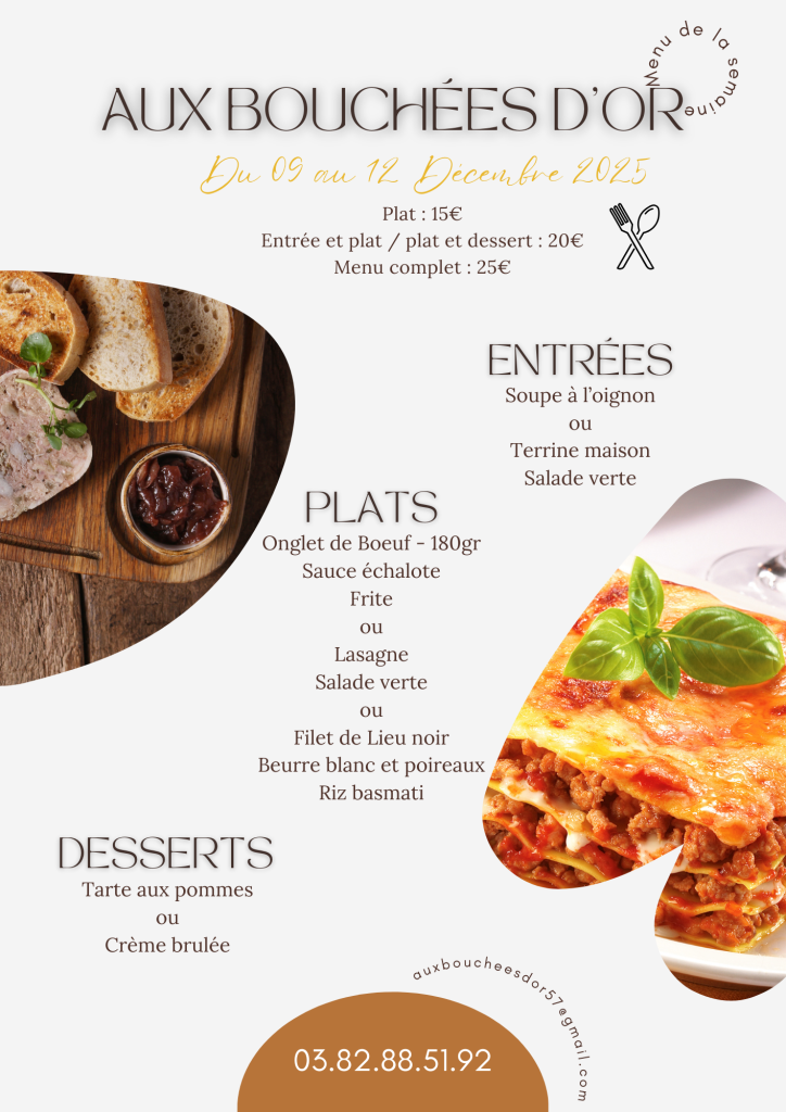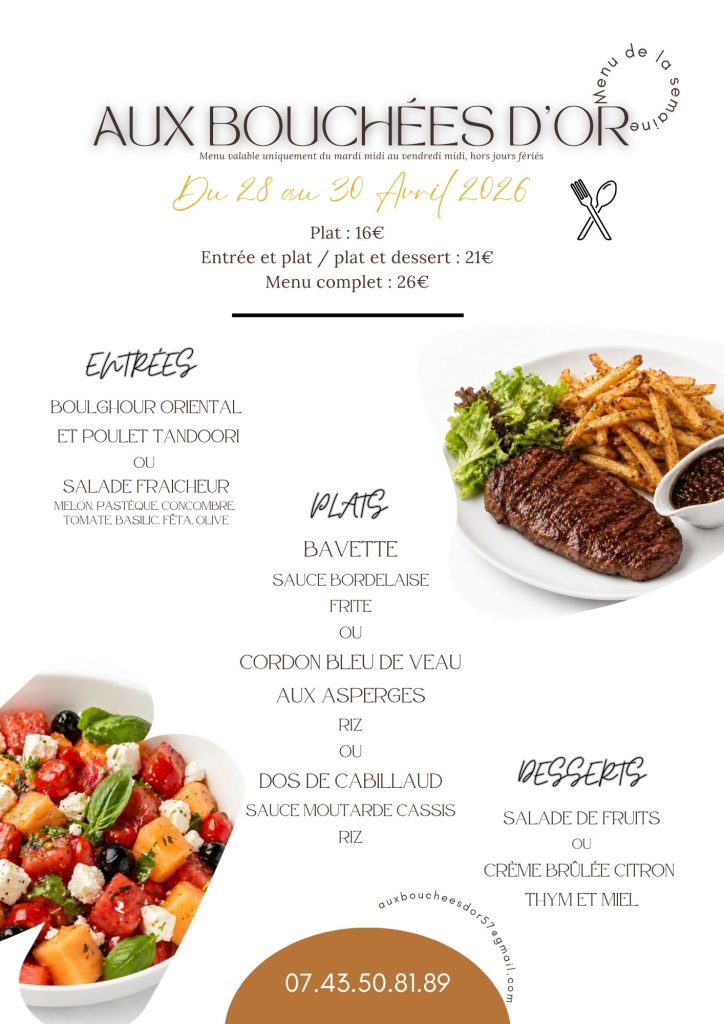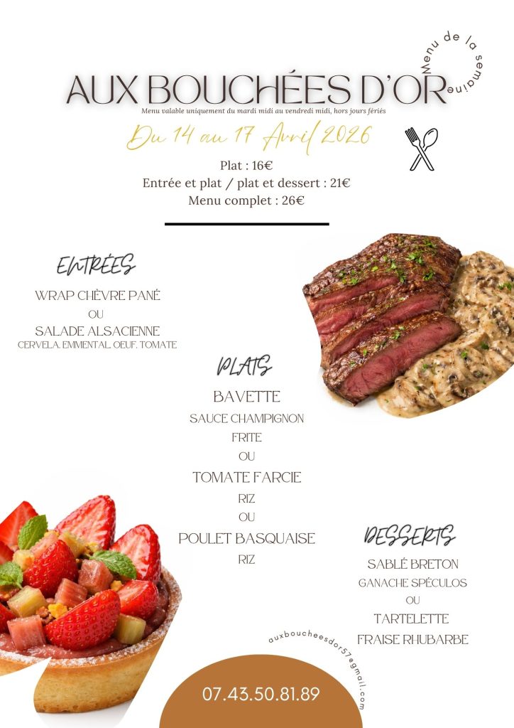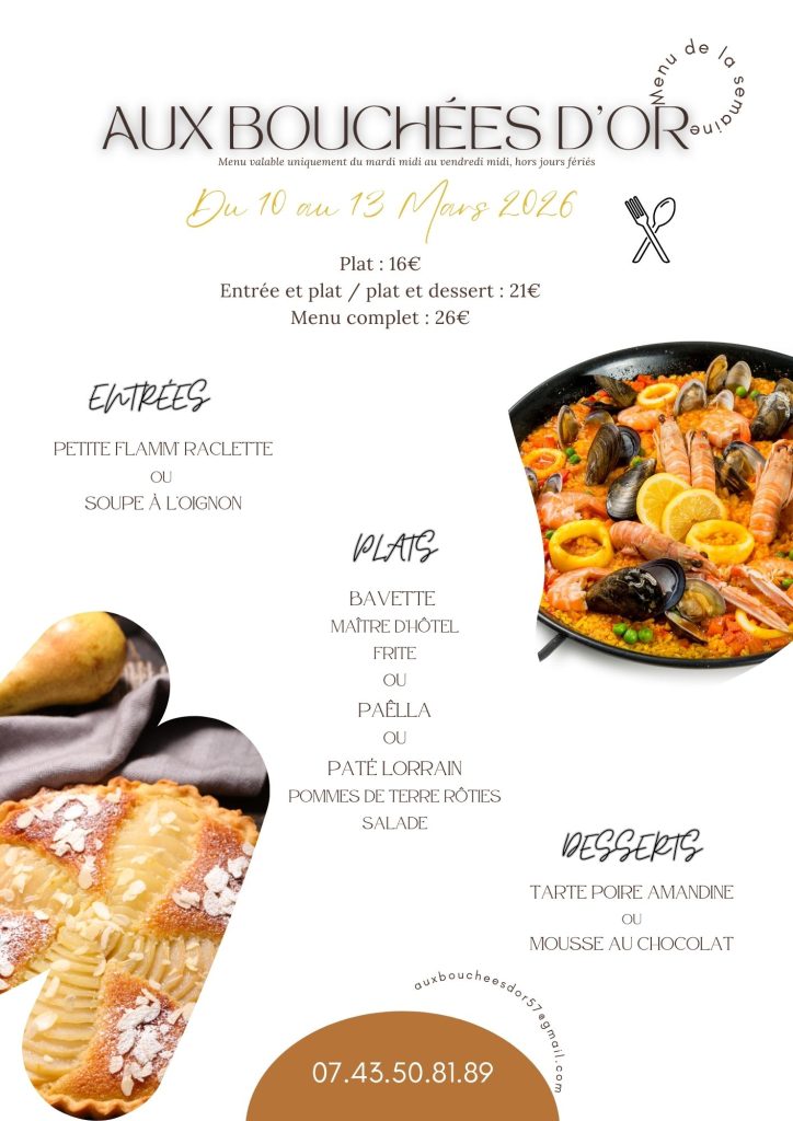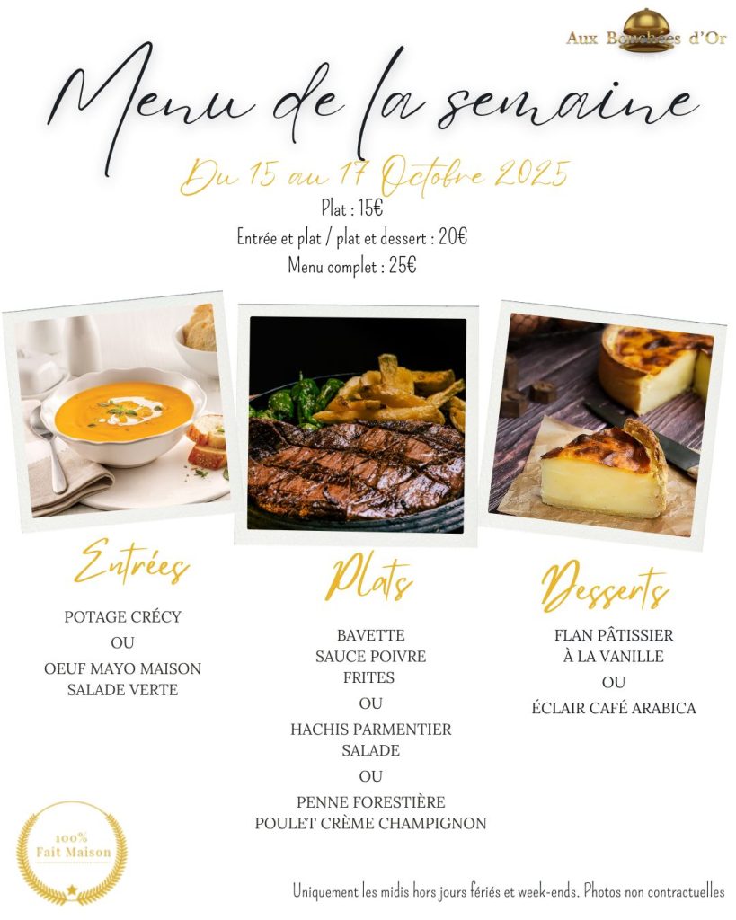 Carte du midi ! Des Ingrédients Frais et de Qualité Voici nos choix pour le menu de la semaine : Une sélection de plats traditionnels français à déguster chez nous. Savourez nos délicieuses spécialités !Sur place ou à emporter !